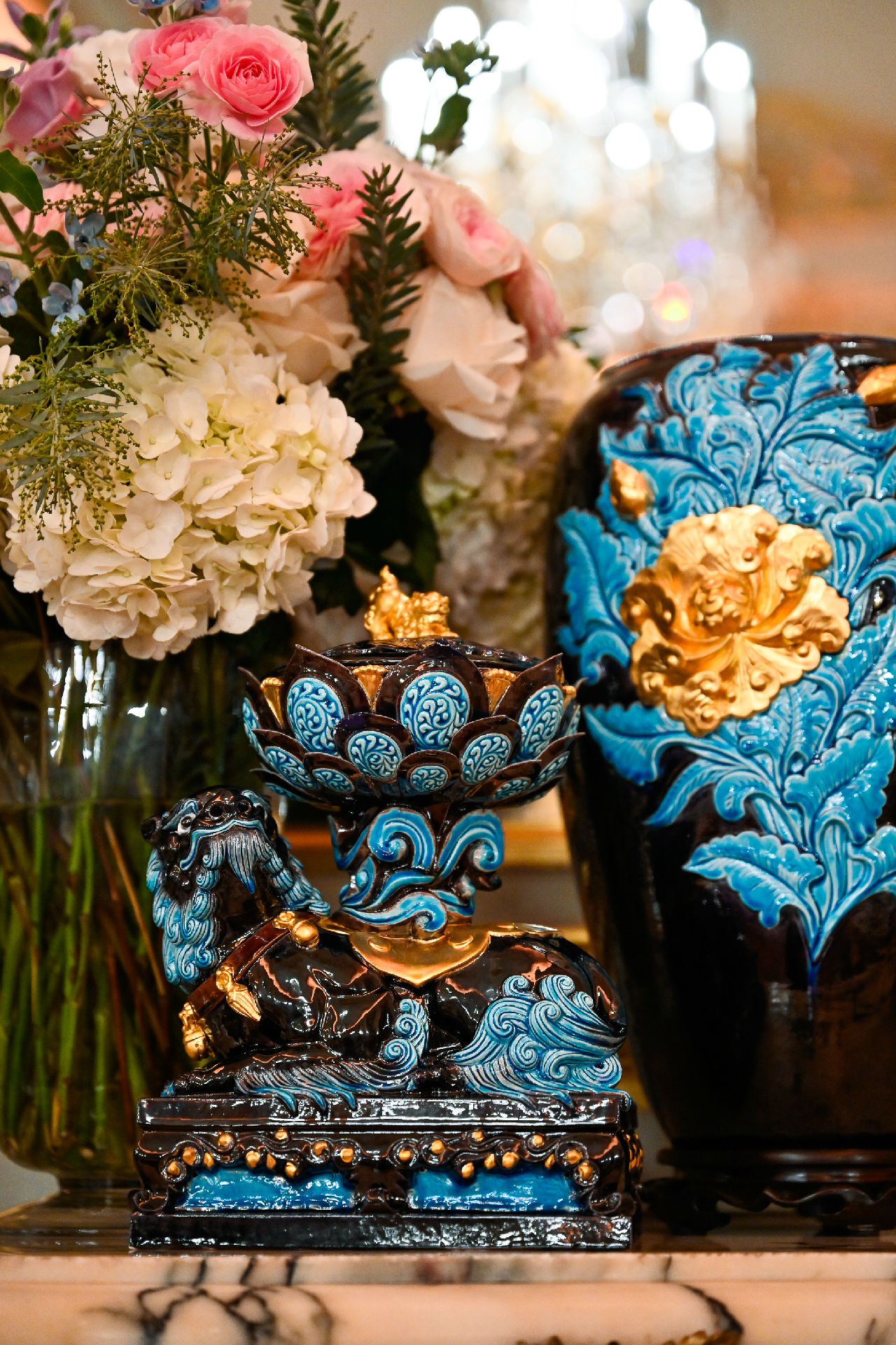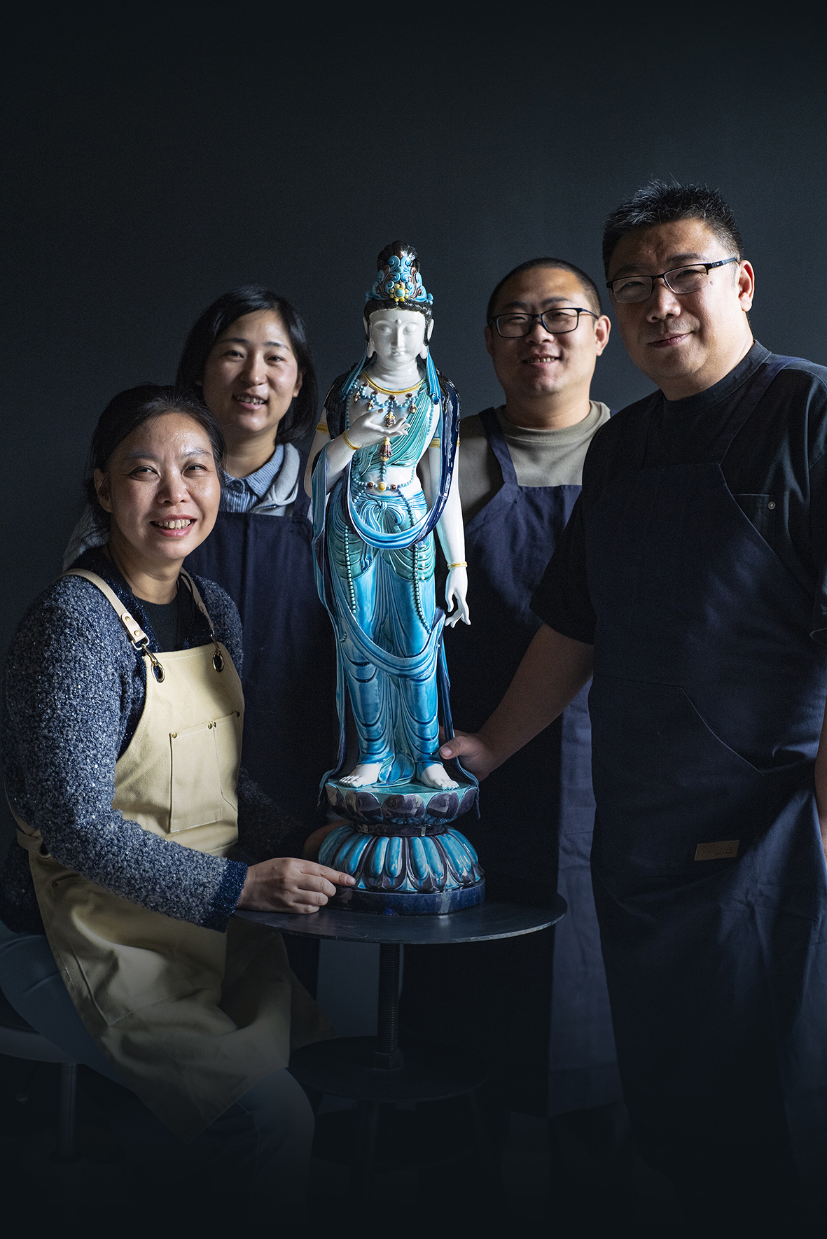 匠心感悟:传承文化,促进交流 Craftsmanship Insights: Preserving Culture, Fostering Exchange 于山强调,在传承珐华技艺的过程中,区别于民间珐华工艺品烧造,“朝元窑”珐华是首次由艺术家创作并指导的当代珐华艺术品的实践创新。这种创新不仅保留了珐华技艺的传统精髓,更融入了现代艺术元素和审美观念,使得珐华艺术品焕发出新的生机和活力。 Yu Shan emphasized, in the pursuit of preserving Fahua craftsmanship, what sets Zhao Yuan Yao Fahua porcelains apart from traditional Fahua folk crafts, is that Zhao Yuan Yao Fahua artworks represent a pioneering practice where artists create and guide the production of contemporary Fahua artworks.This innovative practice not only retains the traditional essence of Fahua craftsmanship but also integrates modern artistic elements and aesthetic perspectives, breathing new life and vitality into Fahua artworks. 大量的摸索和尝试,不仅让他们触碰到了很多遗失的密码和技艺,更为拓展其他门类的研究提供了有益的借鉴。例如,在解决珐华低温釉彩难以烧造金色的问题时,团队采用了贴金方式。这一做法竟与近期南海“一号沉船”考古中首次发现的珐华瓷器主体纹饰贴上的黄金金箔工艺不谋而合。 After countless trials and explorations, the team has not only stumbled upon many forgotten techniques and secrets but has also paved the way for research in other fields. One such instance is the innovative solution to the challenging task of firing gold on Fahua's low-temperature enamel: the team devised a method—gold foil attachment. Amazingly, this method aligns with a first-ever discovered gold foil technique on Fahua porcelain from the archaeological findings of the "Wreck No. 1 in the South China Sea". “这意味着我们在研究和恢复的过程中,可能与古人有了相通的地方。这也和我们十几年来的积累有关,当时直觉就觉得应该这样做。后来看到新闻的那一刻,觉得仿佛跟古人有对话了。”于山说。 "This means we may have tapped into something that resonates with the ancients in our research and restoration process," Yu Shan remarked. "This connection is deeply rooted in our decades-long accumulation of knowledge and intuition, which told us this was the right path to follow. When I saw the news later, it felt like engaging in a dialogue with the ancients." 对于有志于从事传统文化传承与创新的青年艺术家们,于山建议在研究和汲取中华民族深厚历史文化底蕴的基础上进行创新,让珐华技艺的生命力更旺盛。 For all young artists passionate about preserving and innovating traditional culture, Yu Shan encouraged them to innovate by studying and drawing inspiration from the profound roots of Chinese nation's history, breathing new life into Fahua craftsmanship. 珐华技艺的复兴也带动了相关产业的发展。随着珐华作品的知名度和美誉度不断提高,越来越多的人开始关注和喜爱这一艺术形式。这不仅为珐华技艺的传承和发展提供了更广阔的空间和机遇,也为相关产业的繁荣和发展注入了新的活力和动力。 The revival of Fahua craftsmanship sparks a chain reaction of growth across related industries. As Fahua works gain greater visibility and acclaim, more and more hearts are captivated by this enchanting art form.The rising popularity is not only opening up vast new horizons and presenting opportunities for Fahua's heritage and development, but also infusing related industries with fresh vigor and momentum.